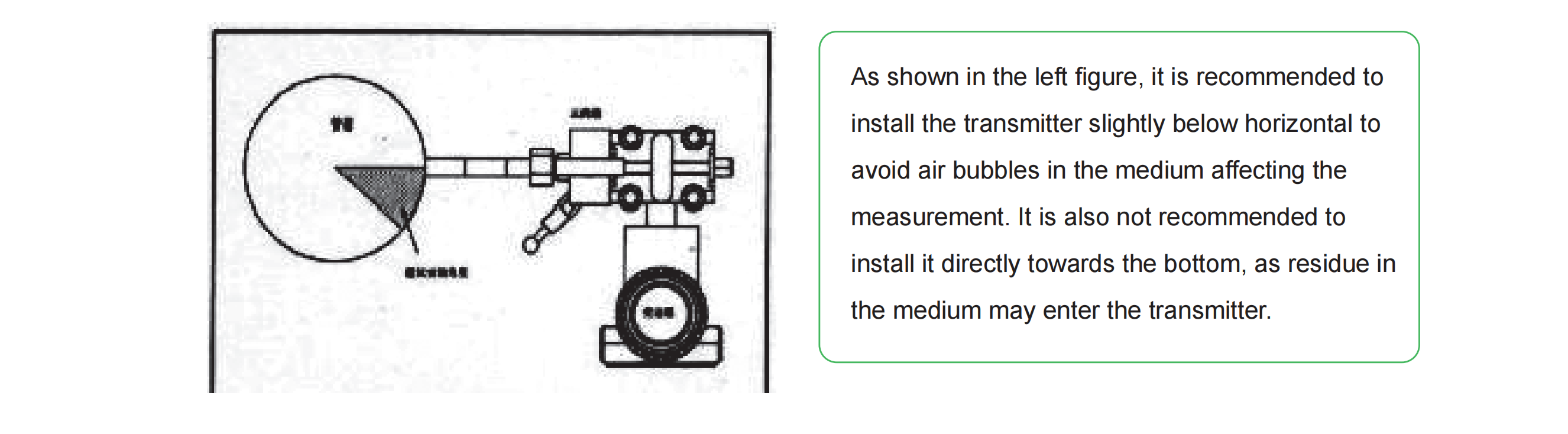 2. The measurement point in the liquid flow pipeline should be lower, and the measurement point in the gas pipeline should be higher.